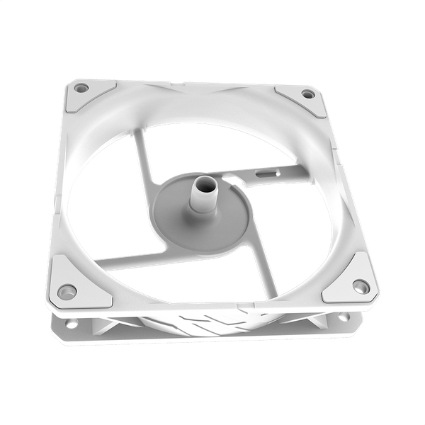 An improved fan blade provides higher fan speed, air pressure, and airflow while sticking to the same low noise level the SickleFlow is known for.