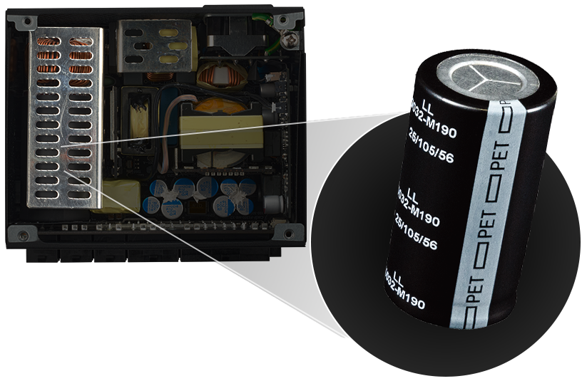 Crafted with flat copper wire on Choke of DC-DC, flat transformer piling and aluminum plate dissipation structure on full-bridge LLC, it can effectively achieve components miniaturization. Adopting with advanced manufacturing process, it simultaneously keeps miniaturized but solid.